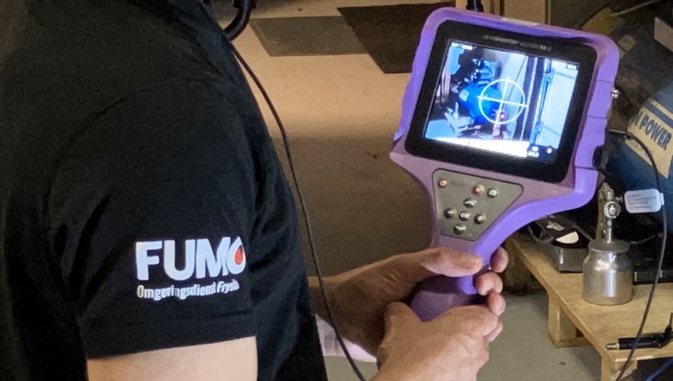 Met een ultrasoonmeter is het mogelijk om lekkages in de perslucht op te sporen. Diederik Terlaak Poot, milieu-inspecteur bij de FUMO legt uit: “Een lekkage in de perslucht kost bedrijven veel energie en daarmee ook geld. Met een ultrasoonmeter kunnen we op een hele gemakkelijk manier meten of er ergens een lekkage is. Dit kan ook in een rumoerige ruimte met lawaai van machines; handig wanneer met het blote oor niet te horen is of er een lek is. Ook wanneer leidingen op (grote) hoogte zijn, hoeven we niet met een ladder naar boven, maar kunnen we dit vanaf de grond meten. Nadat we een lek hebben geconstateerd, maken we een foto en verwerken deze in een rapportage. Vaak zorgen kleine aanpassingen al voor minder energieverbruik- en kosten.”