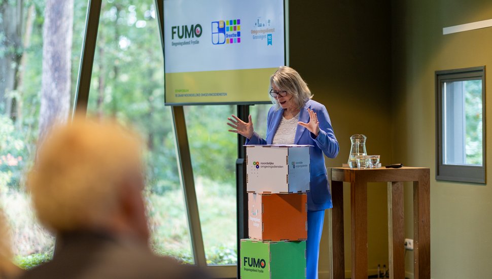 Een kritische maar begripvolle noot kwam van Winnie Sorgdrager, voormalig politica, Officier van Justitie en lid van de Commissie van Aartsen, die het functioneren van het VTH-stelsel (milieu-vergunningverlening, toezicht en handhaving) onder de loep nam. Haar stelling was dat het stelsel is versnipperd en dat er zijn veel belangen en dilemma’s zijn die omgevingsdiensten beïnvloeden in het uitvoeren van hun taken. Bovendien vindt ze de afspraken in het Interbestuurlijk Programma Versterking VTH-stelsel te vrijblijvend. In dit IBP-VTH hebben het Rijk, de provincies, gemeenten en waterschappen afspraken gemaakt over tien maatschappelijke complexe opgaven, die veel impact hebben op onze inwoners en hun leefomgeving. Ze gaf de deelnemers mee dat erover valt te denken om bepaalde thema’s meer te centraliseren. Waarom zou er niet één handhavingsbeleid voor Noord-Nederland worden gemaakt? Dat zou kennisdeling, maar ook eenduidige uitvoering alleen maar ten goede komen.
